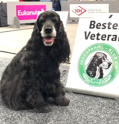 Sehr erfolgreicher Tag für Emma , Maira und Elisabeth. Emma lief nach 3 Jahren erstmals wieder in der Veteranenklasse und bekam ein V1 VCAC VDH und Klub, dazu gab es erstmals das Veteranen CACIB. Im Ehrenring kamen wir leider nicht in die Endauswahl. Sie ist damit neuer Veteranen Klubchampion vom Jagdspaniel Klub!