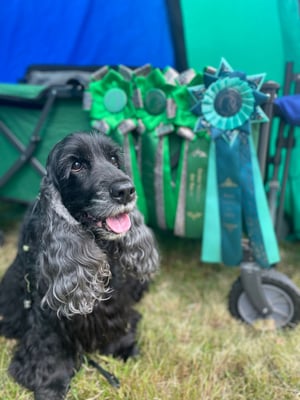 Eigentlich sollte auch Ginny an den Start gehen, aber da sie nach der 1. Läufigkeit viel Fell abgeworfen hat, haben wir auf einen Start verzichtet.
