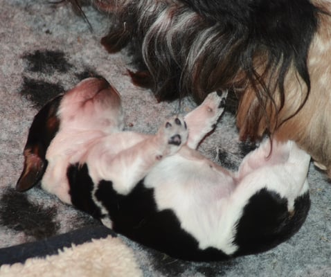 22 + 23.09.2018 Anni ist großartig und wacht auch mal mit Knurren über Ihre Babys! Die Zwerge entwickeln sich prächtig und beginnen schon mit "Gehversuchen"!