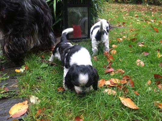 November 2018. Die Zwerge sind nun schon fast richtige Hunde und wachsen schnell und sehen inzwischen etwas schlaksig aus. Am 16.11. haben wir den ersten kleinen Spaziergang mit den Fratzen