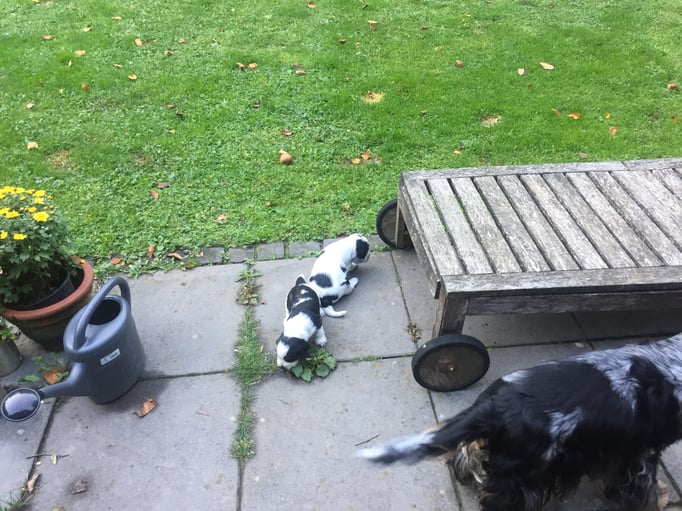 15.10.2018 Es ist immer noch unnormal warm draussen und so können sich die Wichtel auch draußen aufhalten. Frauchen und Herrchen waren bei einem schwedischen Möbelhaus und haben Spielzeug gekauft - gefällt auch der Mama!