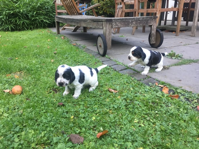 24.09 -02.10.2018 Beide Welpen entwickeln sich gut, wobei Elisabeth etwas größer ist und auch schwerer, was aber in dieser Phase noch nichts zu bedeuten hat. Die Augen haben sich am 30.09 geöffnet und so langsam laufen die Rabauken auch schon durch unseren Welpenauslauf. Noch recht wackelig, aber das geht jetzt schnell.