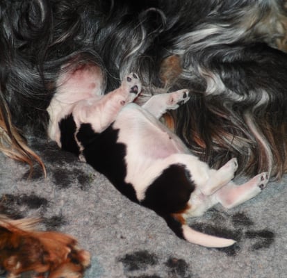 22 + 23.09.2018 Anni ist großartig und wacht auch mal mit Knurren über Ihre Babys! Die Zwerge entwickeln sich prächtig und beginnen schon mit "Gehversuchen"!