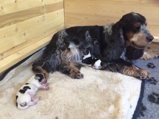 Am 09. April 2022 hat Elisabeth ihren Nachwuchs bekommen. 1 Rüde und 2 Hündinnen, alle Blauschimmel.